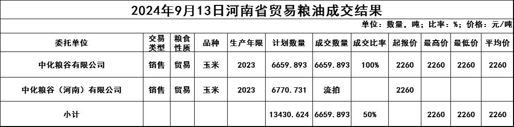 9月13日河南省贸易玉米成交结果